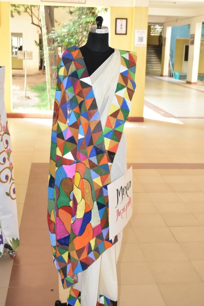 The careful adaptation of these styles onto sarees required more than aesthetic understanding. Students had to study the cultural context, symbolism, and colour theory associated with each art form, ensuring authenticity while interpreting them through a contemporary lens.