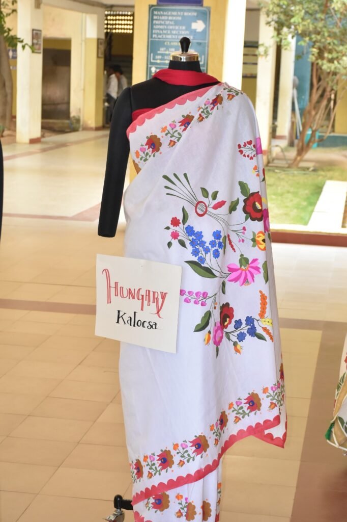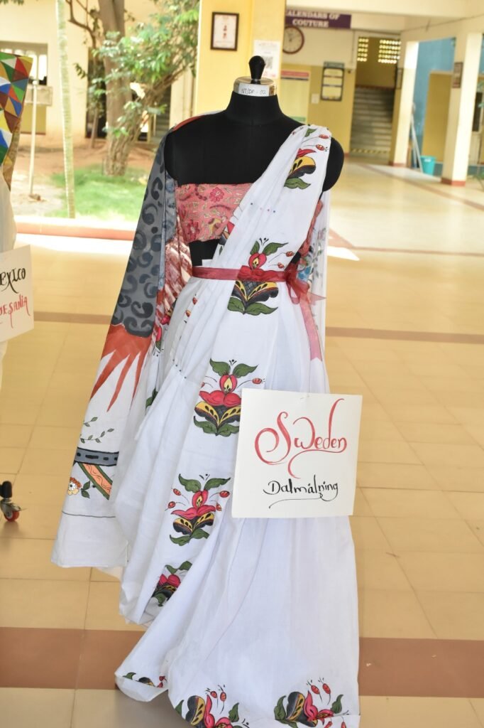 The Costume Designing Department of NIFT-TEA College of Knitwear Fashion has once again demonstrated the creative strength of young designers with a distinctive exhibition titled “Exploring World Traditional Design in Saree”, held at the college campus. Aptly themed “Art Beyond Boundaries”, the exhibition presents 14 hand-painted sarees inspired by traditional and contemporary art forms from 14 countries across the globe.